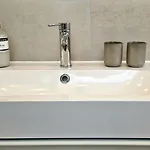 В ванной комнате также есть ванна, душевая кабина и отдельный туалет. Кроме того, гости могут воспользоваться феном, халатами и банными полотенцами.